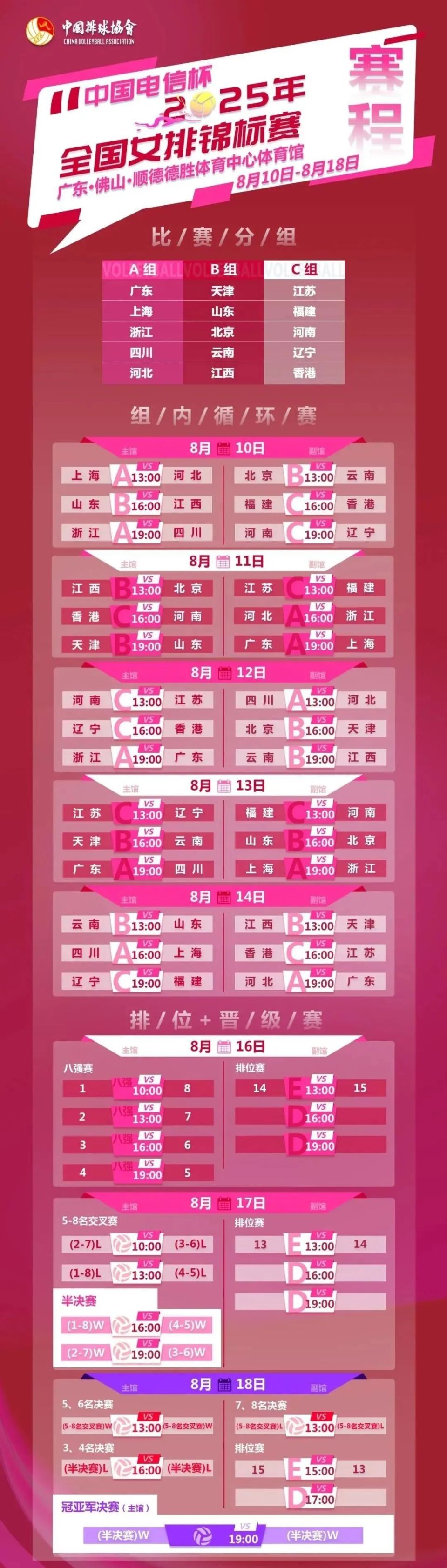 2025年全国女子排球锦标赛在8月10日至18日在广东佛山顺德德胜体育中心拉开帷幕,来自全国各地的15支强队齐聚一堂,将以扣杀、拦网和顽强的防守,在盛夏赛场上谱写属于排球的精彩篇章,这不仅是一场争夺荣誉的较量,更是各省市女排检验备战成效、为冲击全运会舞台蓄力的重要实战平台。